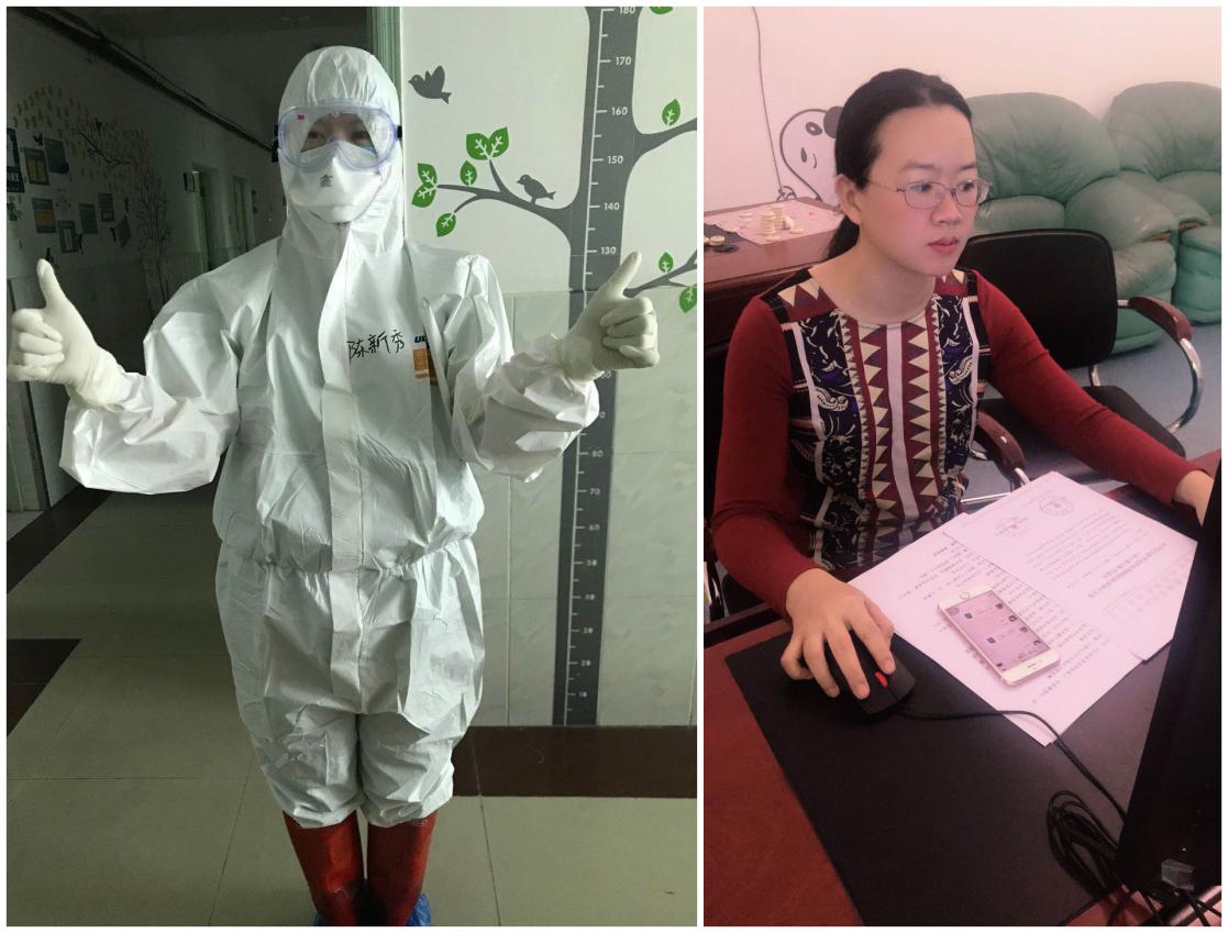 (陈新秀在隔离病区工作与生活照)