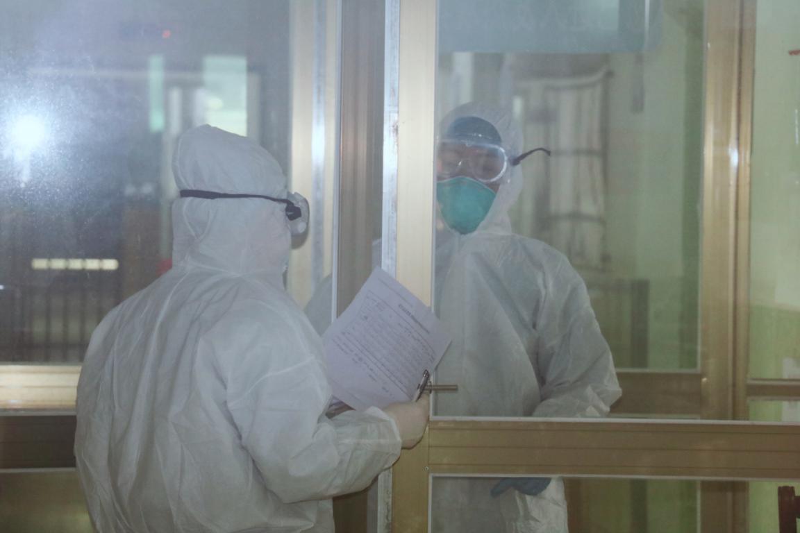 (隔离病区医护人员正在交接工作)