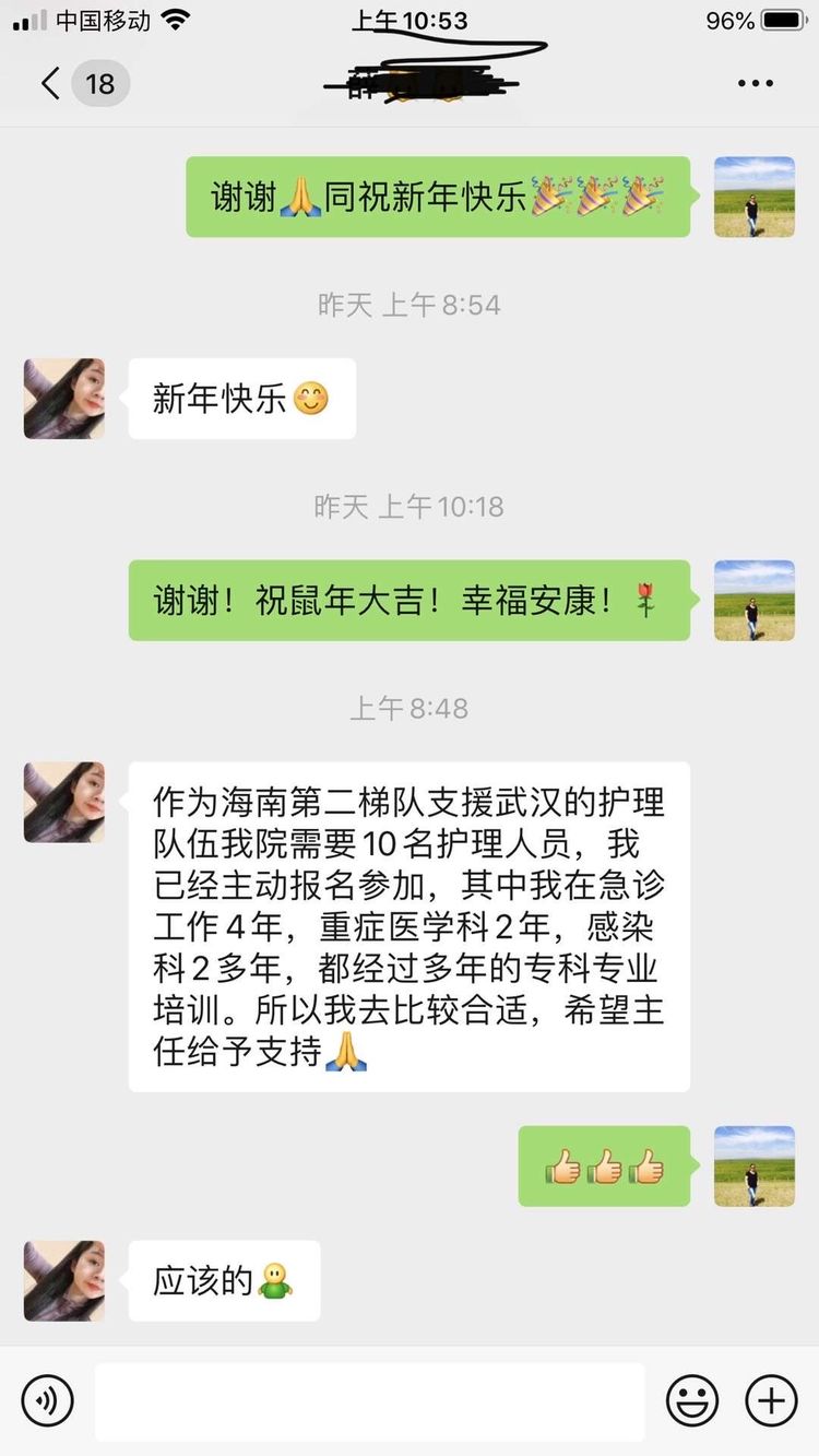 得知援鄂消息后,爸爸沉默了,妈妈的双眼顿时流露出跟2014年6月我去中建南981钻井平台维权一样万般不舍的眼神,随即留下两行惜别不忍的热泪。在家我是父母的小公主,但为了国家的安危,为了人民的健康,他们再有万般不舍也要送儿千里驰援!