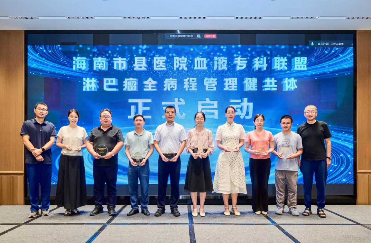 海南西部中心医院血液科主任李仙松(左3)接受授牌