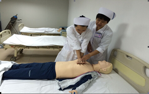 (培训基地的老师精心指导护士进行心肺复苏操作)