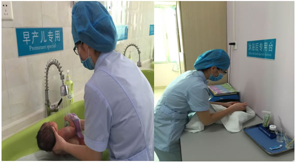 2.2.1沐浴 除危重患儿外,每日为患儿沐浴1次,保持患儿皮肤清洁,防止受到细菌的侵害,沐浴室内使用中央水温调控热水器,温度调节38~42℃之间,设有各个病室独立沐浴盆,并分开沐浴前后护理区域,避免院内感染的发生。