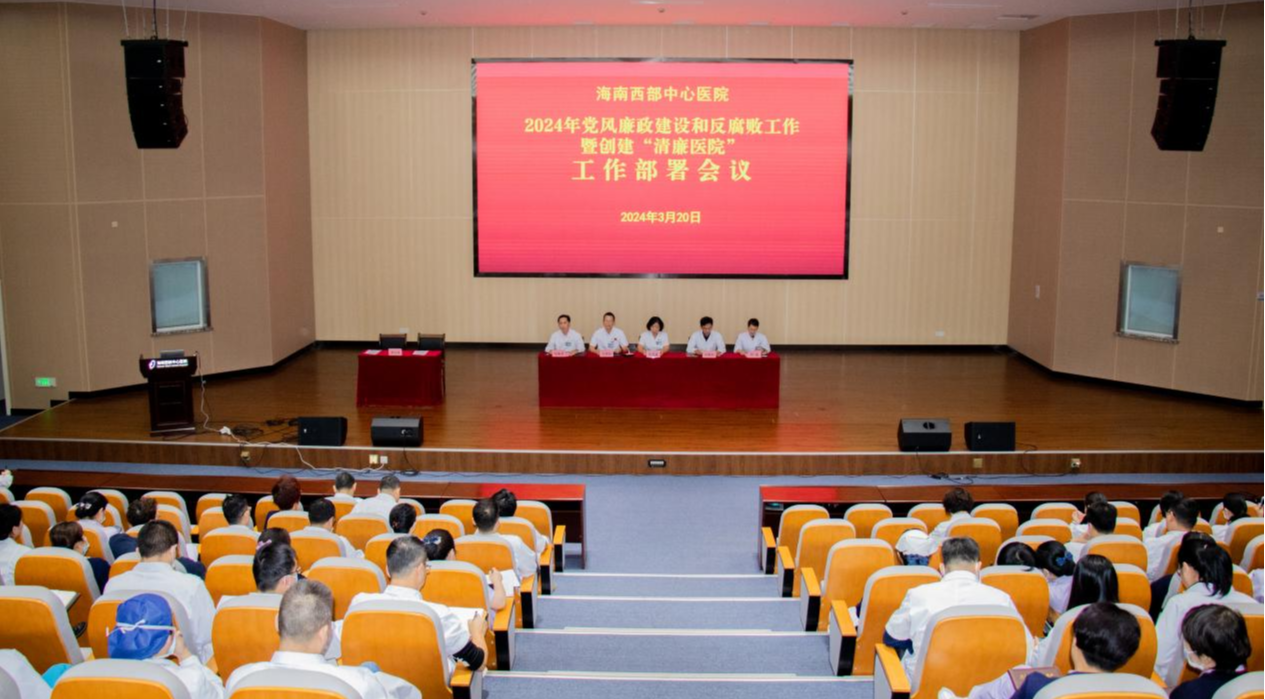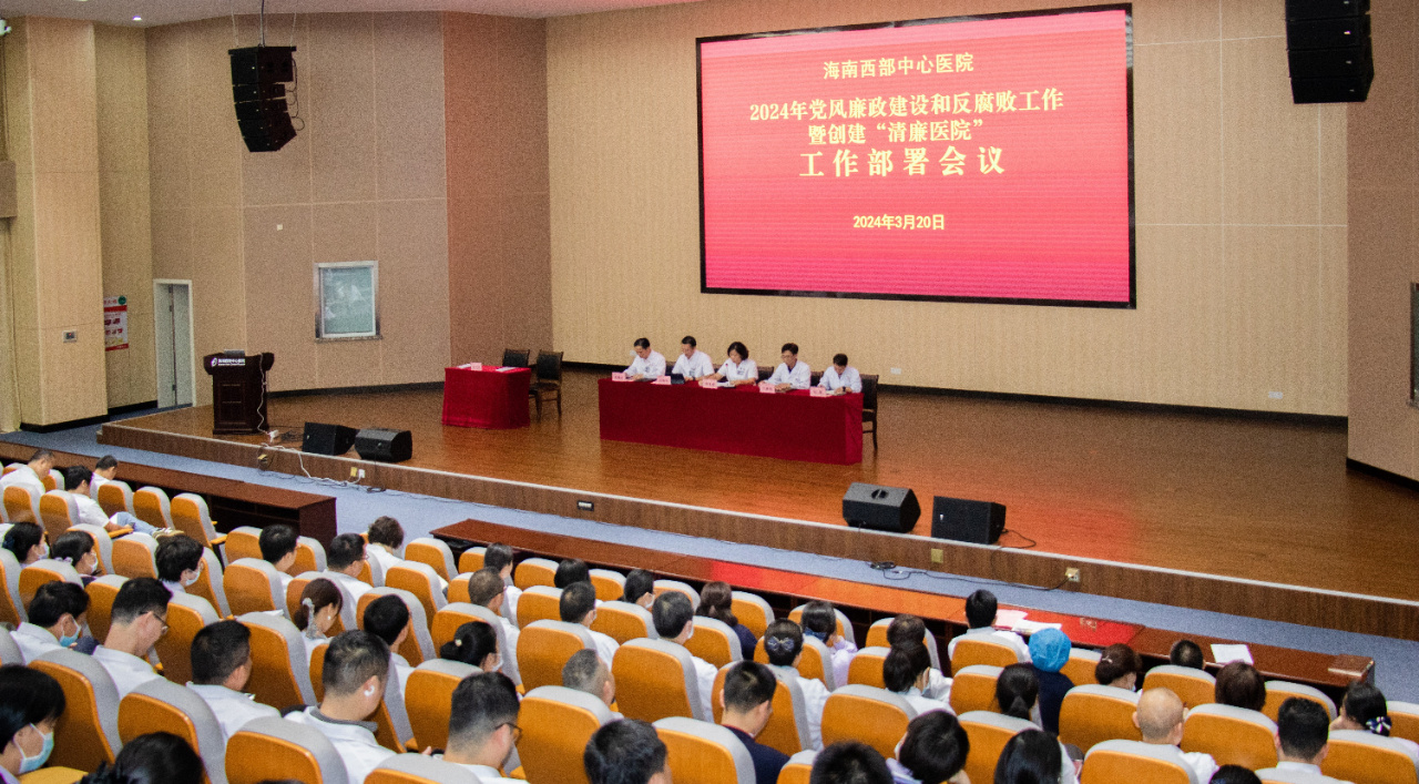3月20日,海南西部中心医院在综合楼学术报告厅召开2024年党风廉政建设和反腐败工作暨创建“清廉医院”工作会议。院党政领导班子全体成员、全体中层领导、党支部书记、在职党员(代表)共150余人参加会议。会议由副院长方锋凯主持。