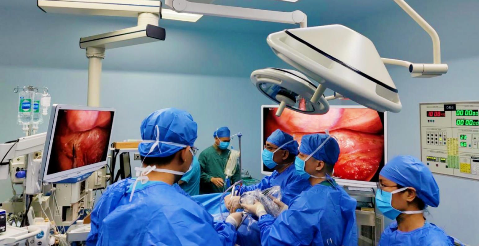 手术当天,团队各司其职、无缝衔接,胸外科纪广玉主任医师、黄定洲主任亲自主刀操作,李智豪、邹裕海等科室青年骨干医生紧密配合完成术中各项辅助操作,开启了一场与病魔的精准攻坚之战。经过8小时的连续奋战,顺利完成全部手术流程:成功完整切除长度约5cm的肿瘤组织,彻底清除病灶;精准制作管状胃并将其顺利上提至颈部,完成食管与胃的精准吻合,确保消化道通畅。整场手术出血仅约150ml,远低于常规手术出血量,患者术中生命体征始终保持平稳,未出现任何严重并发症,这场高难度食管癌微创根治术,最终实现了安全、高效、微创的圆满成效。