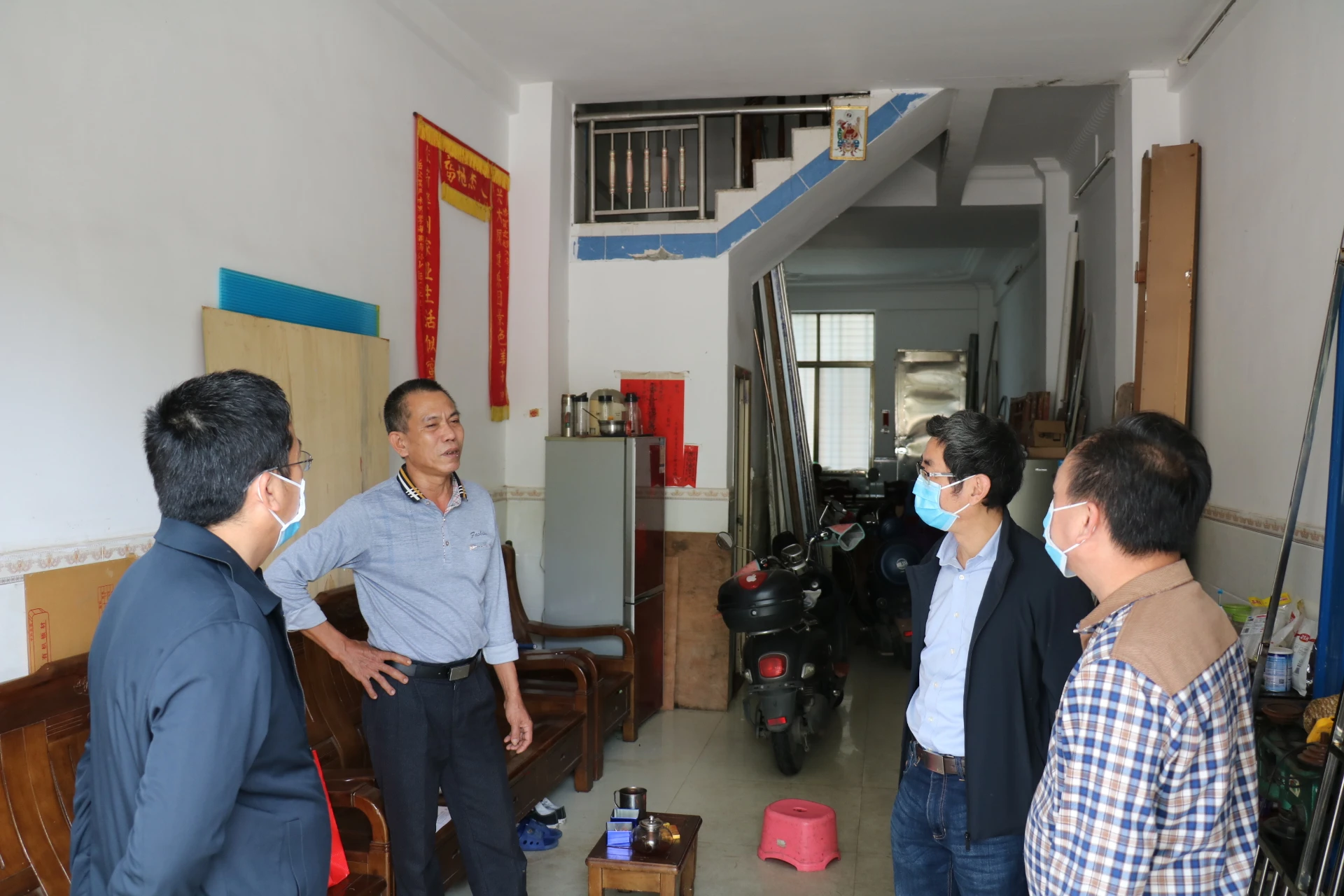 (海南西部中心医院党委委员方锋凯(右三)慰问金桂燕家属)