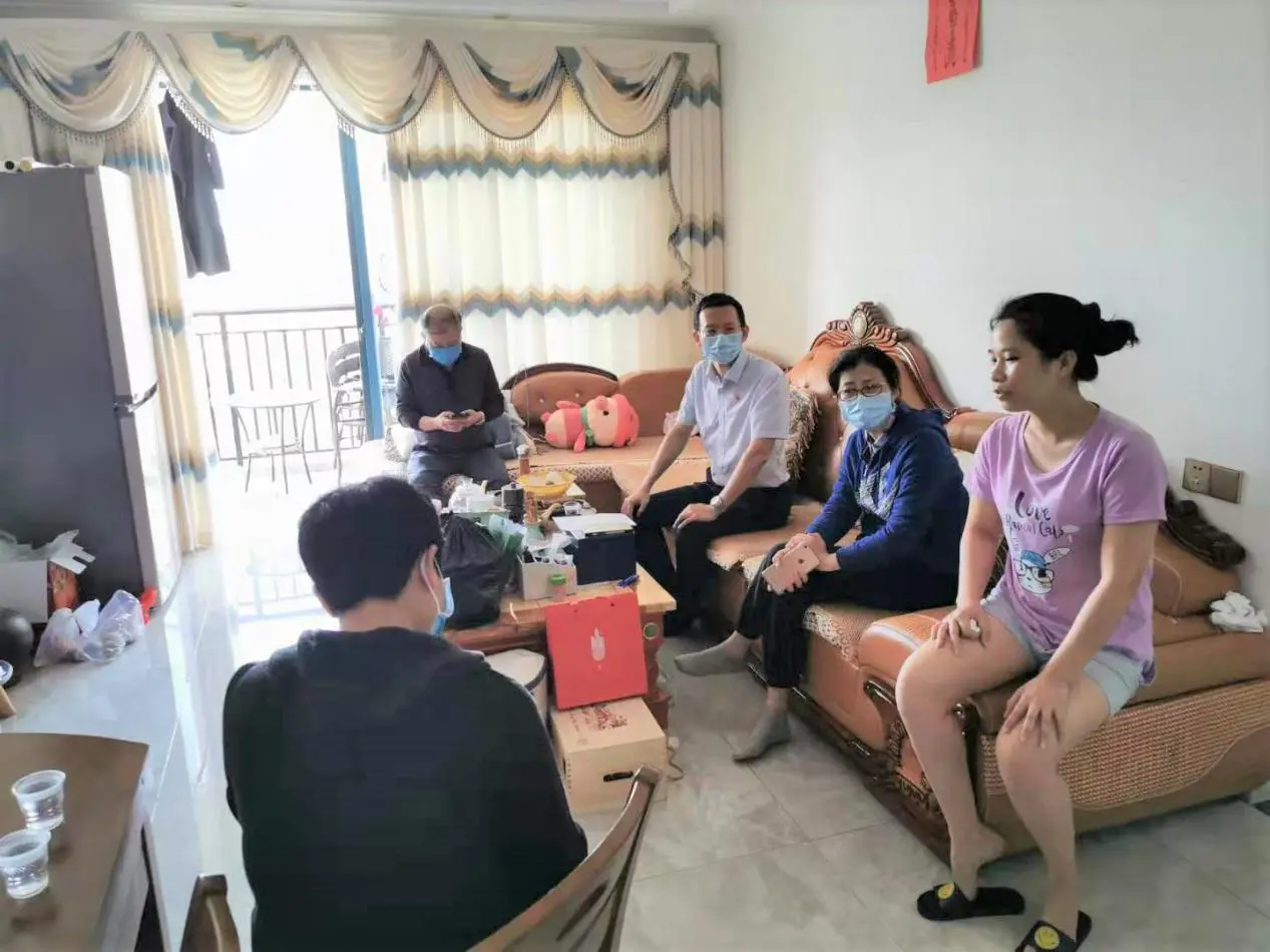 (海南西部中心医院党委副书记、副院长苏林光(左一)慰问邓冬梅家属)